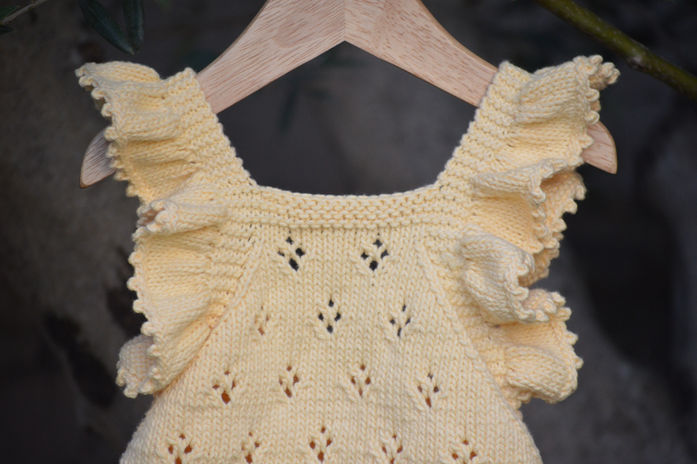Acompañado de un adorable bloomer tejido a juego, es una pieza única pensada para resaltar la dulzura y personalidad de tu bebé. Confeccionado a mano con cuidado y materiales suaves de alta calidad.